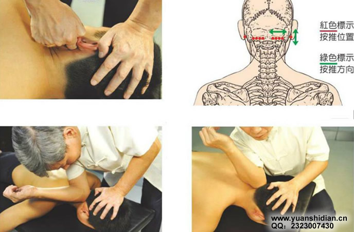 提示:按推耳后骨旁及枕骨下沿之原始痛点,须用热源温之。